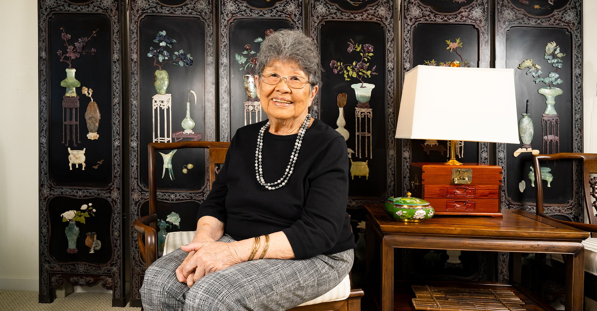 Claire Lee, resident of Villa Marin, enjoys her beautiful condominium replete with family antiques and sweeping western views. Claire has maintained relationships with her friends from Terra Linda where she lived for many years with her husband and family.