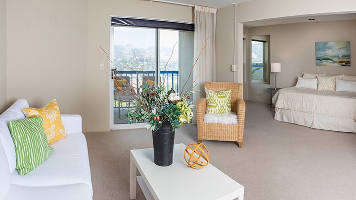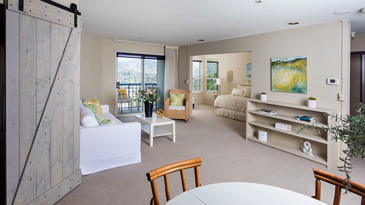 Villa Marin type C condominiums are our midsize homes with 1 bedroom plus den and 2 baths, suitable for either single or double occupants. The den may also be used as a 2nd bedroom. Each offers an open or enclosed balcony with beautiful views of East or West Marin and easy access to all the great amenities at Villa Marin. Call today for a complimentary tour of our available Model B condominiums today. Download the floor plans for a better view of each sub-model type.